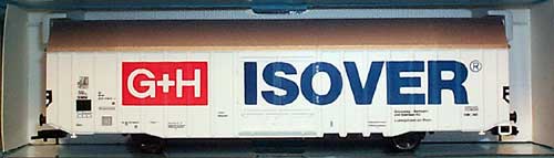 Bezeichnung: | Großraumgüterwagen der DB mit Aufschrift "G+H Isover" |