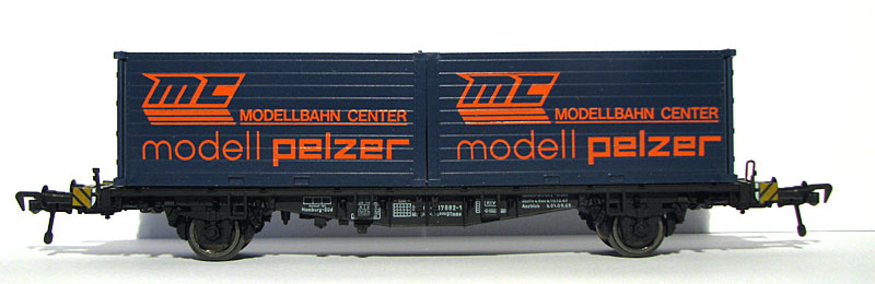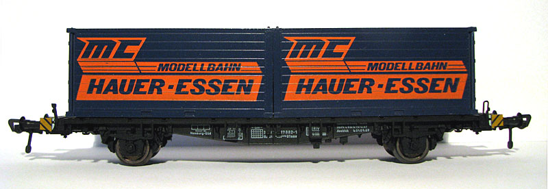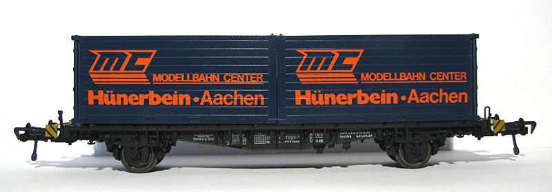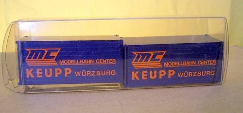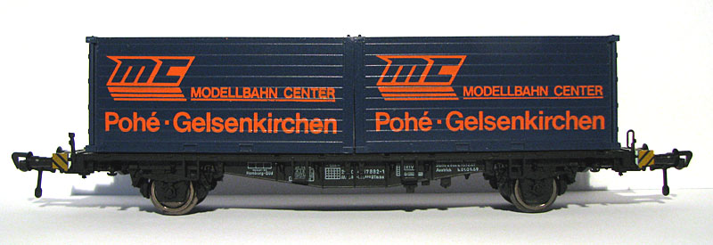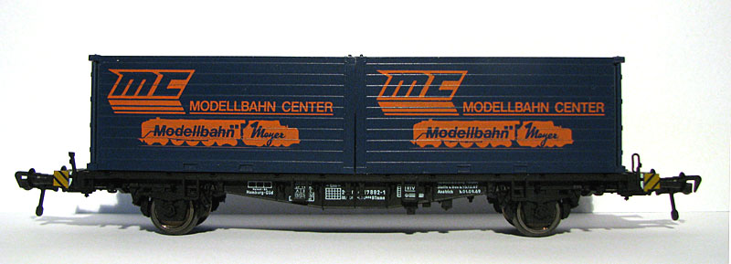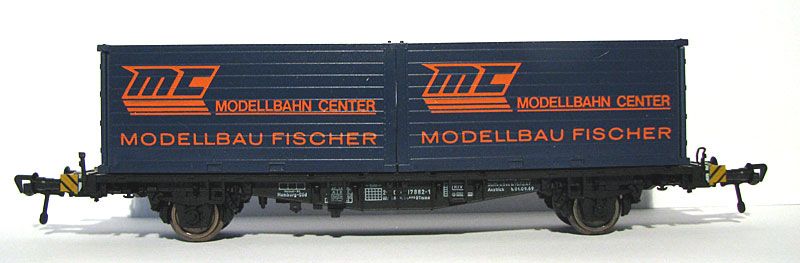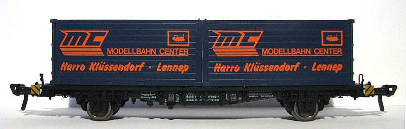 Container dieser Wagen speziell bedruckt. Die Wagen waren nur in diesen MC-Fachgeschäften erhältlich. Über die Auflagen der einzelnen Wagen liegen mir keine Angaben vor. Es scheinen aber unterschiedliche Stückzahlen für die einzelnen Geschäfte produziert worden sein. |