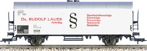 wurden von der Fa. Fleischmann 1989 aus Anlass des 40jährigen Bestehens der Kanzlei Dr. Lauer 3 verschiedene Kühlwagen hergestellt.