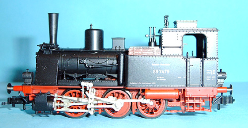 Tenderlok BR 89 der DB, Betr. Nr. 89 7479, schwarz Zweilicht-Spitzenbeleuchtung, brünierte Räder, KK-Kulisse. |