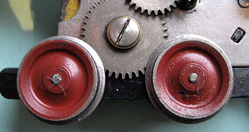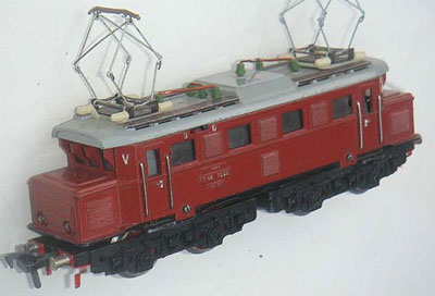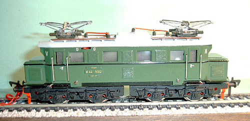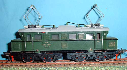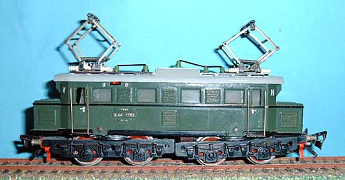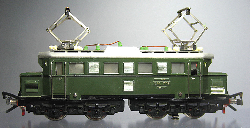 1335G-1a | 1952 | mit Schienenschleifer, massive Drehgestelle ohne Beschriftung, Federtopfräder 1, weisse Pantoplatte, grosse K1, vernickelte Puffer, genietete Blechpanto 1 mit Kupfer-Schleifstück, Dach silberfarbig, Griffstangen 23 mm lang, Laufplanken Dach silberfarbig. | |