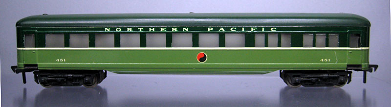 Die Reisezugwagen der Northern Pacific RR entstanden 1955 dadurch, dass die Wagen 1420-1423 , aus denen Fleischmann Wagen der Pennsylvania RR herstellte, in den Farben der Northern Pacific (dunkelgrün) lackierte. Die Wagen sind beleuchtet und sind auf dem Boden mit C2/5; C4/5 und C5/5 gestempelt.