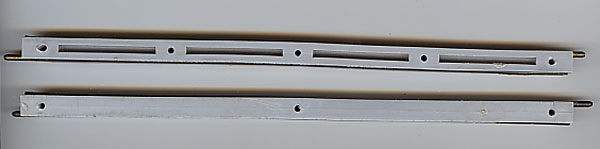 | Underneath the early tracks have 3 wholes for the pylon pins. Later the tracks have 5 wholes. |